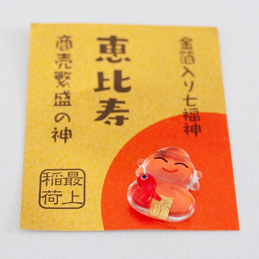 商売繁盛の神様である「恵比寿」を模った金箔入りのお守りです。財布等に入れて大切にお持ちください。